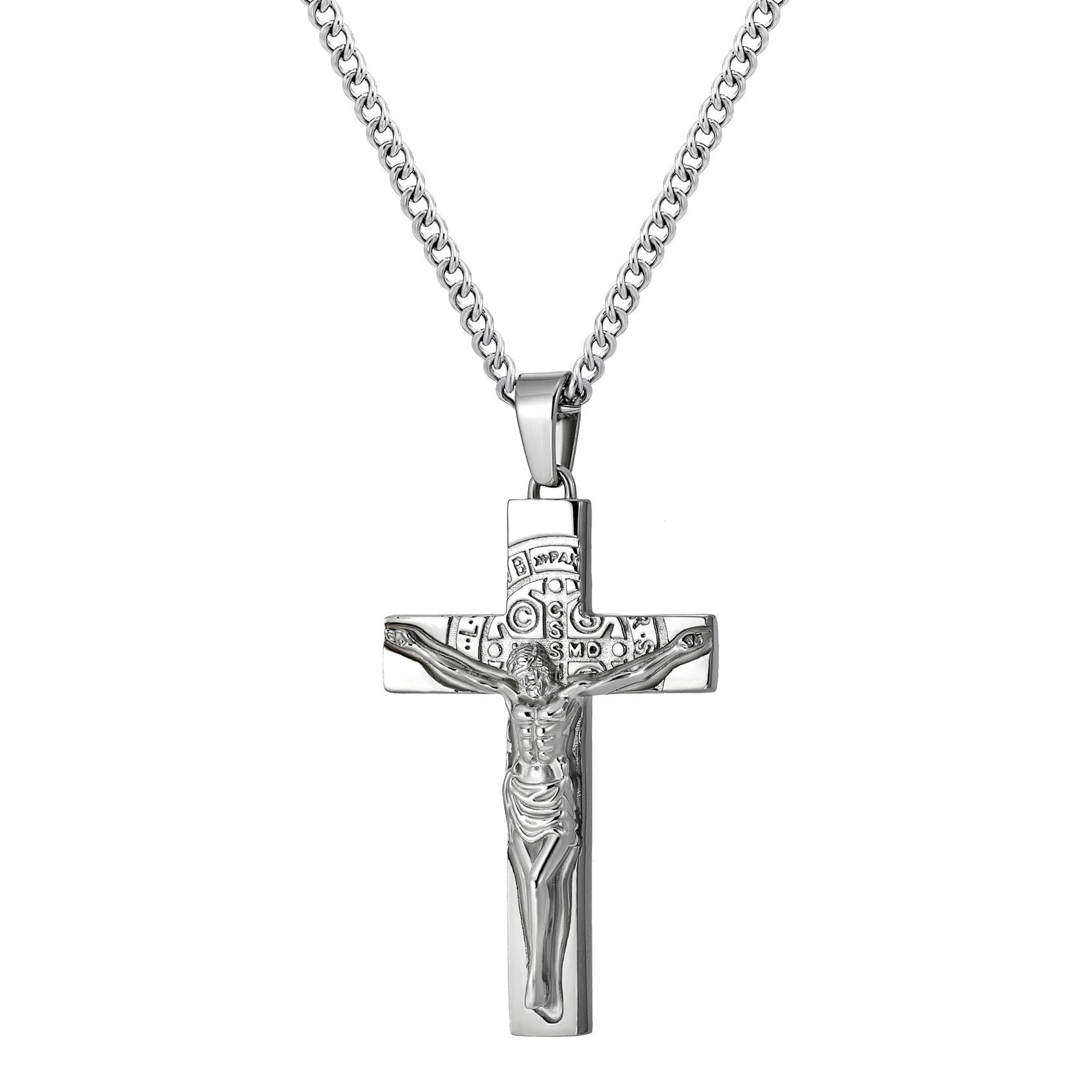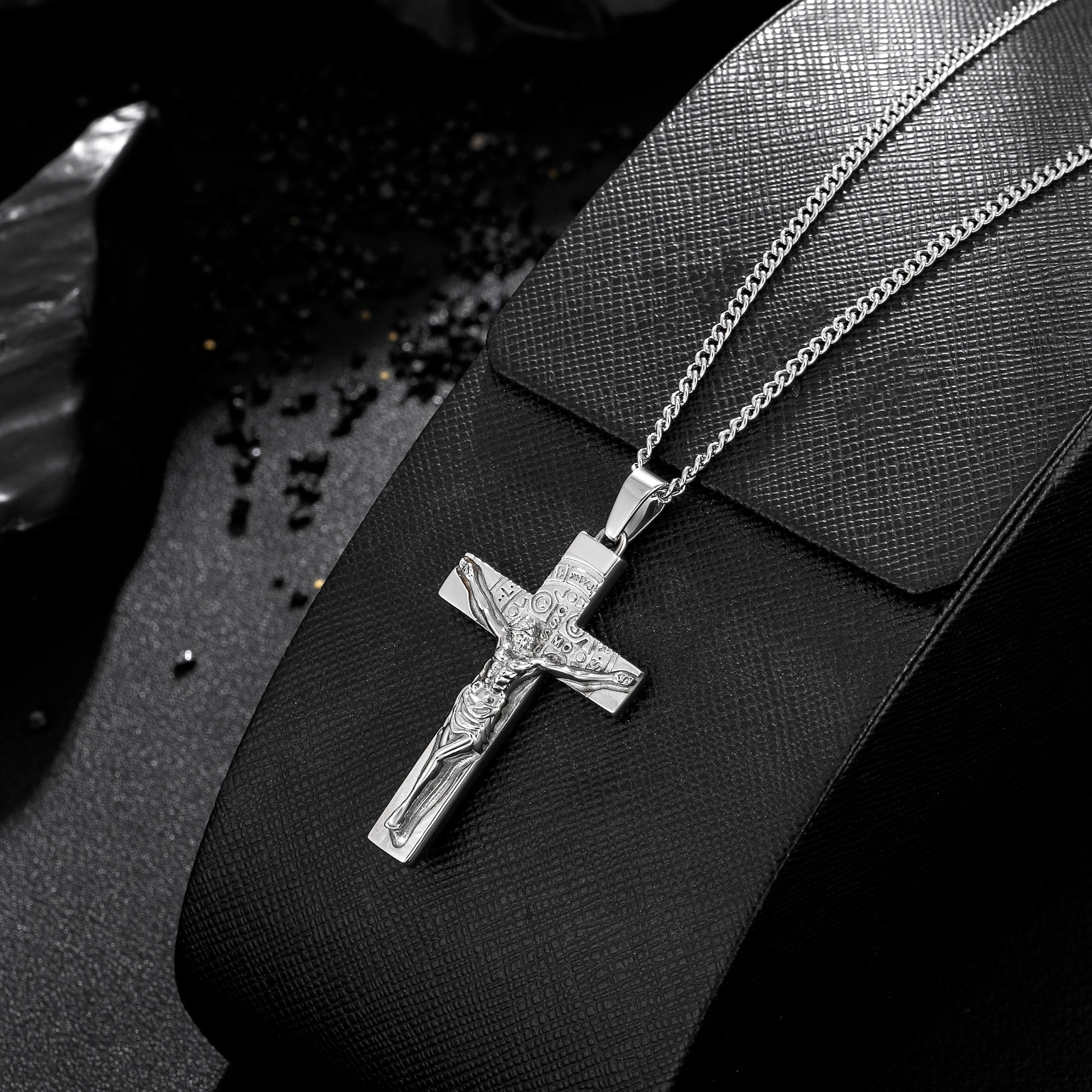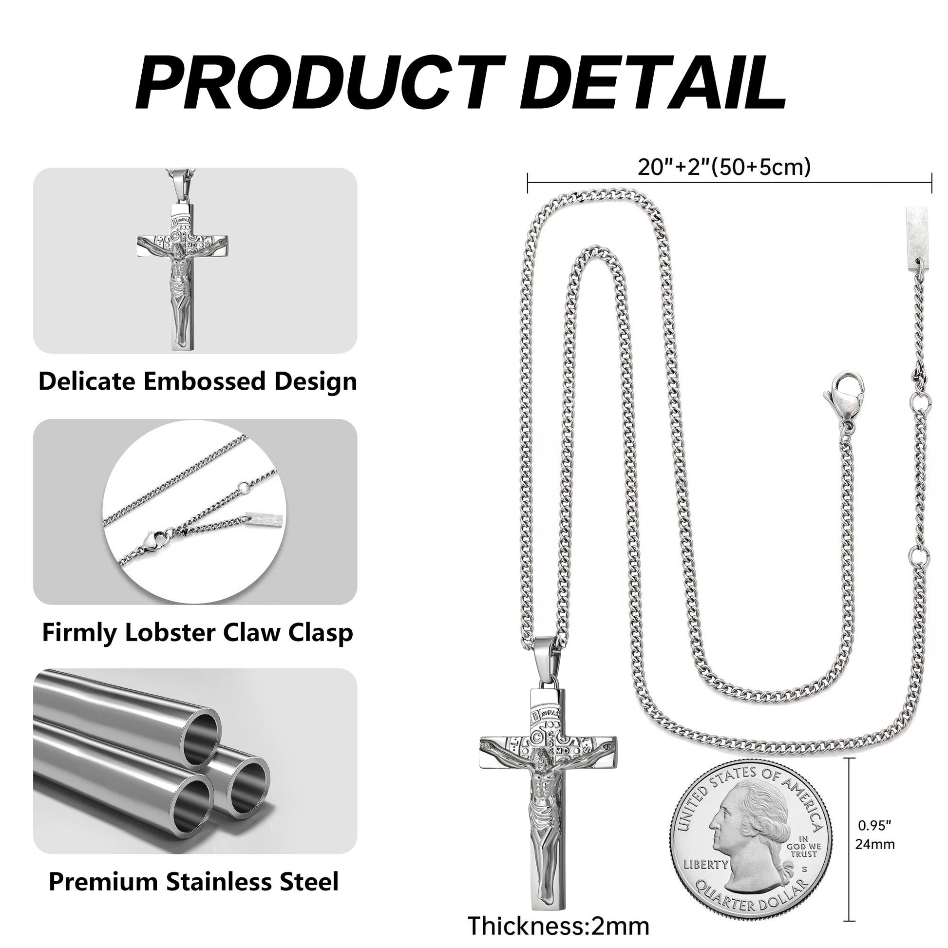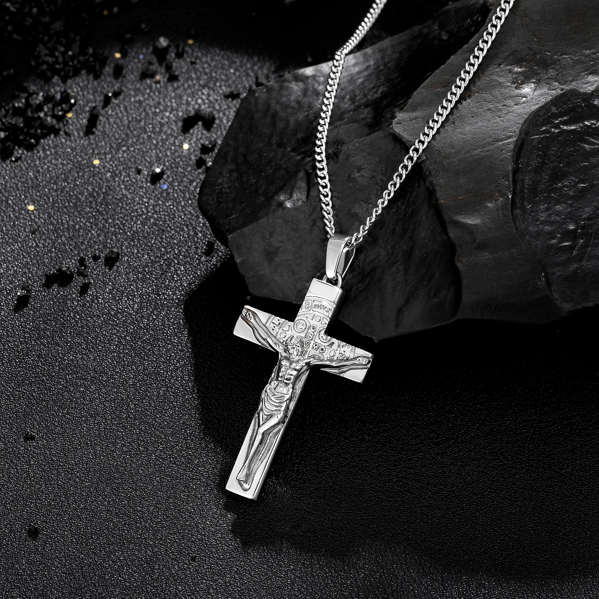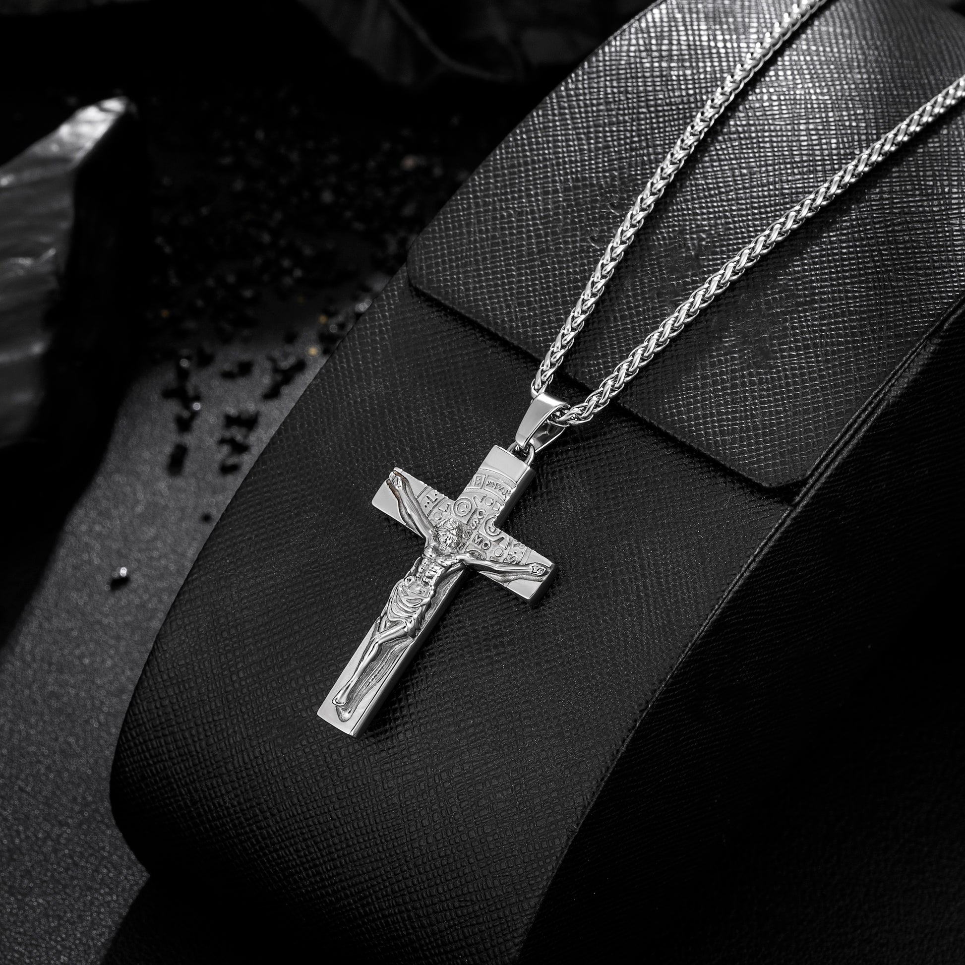 - Crucifix Necklace Design, A classic cross pendant with detailed corpus and textured back creates a recognizable faith symbol for church, gatherings, travel and everyday outfits, offered in two finishes to match different styles, easy to pair with tees, shirts or suits, a simple way to keep a meaningful sign close and share beliefs with spouse, parents or friends across daily life and special moments.