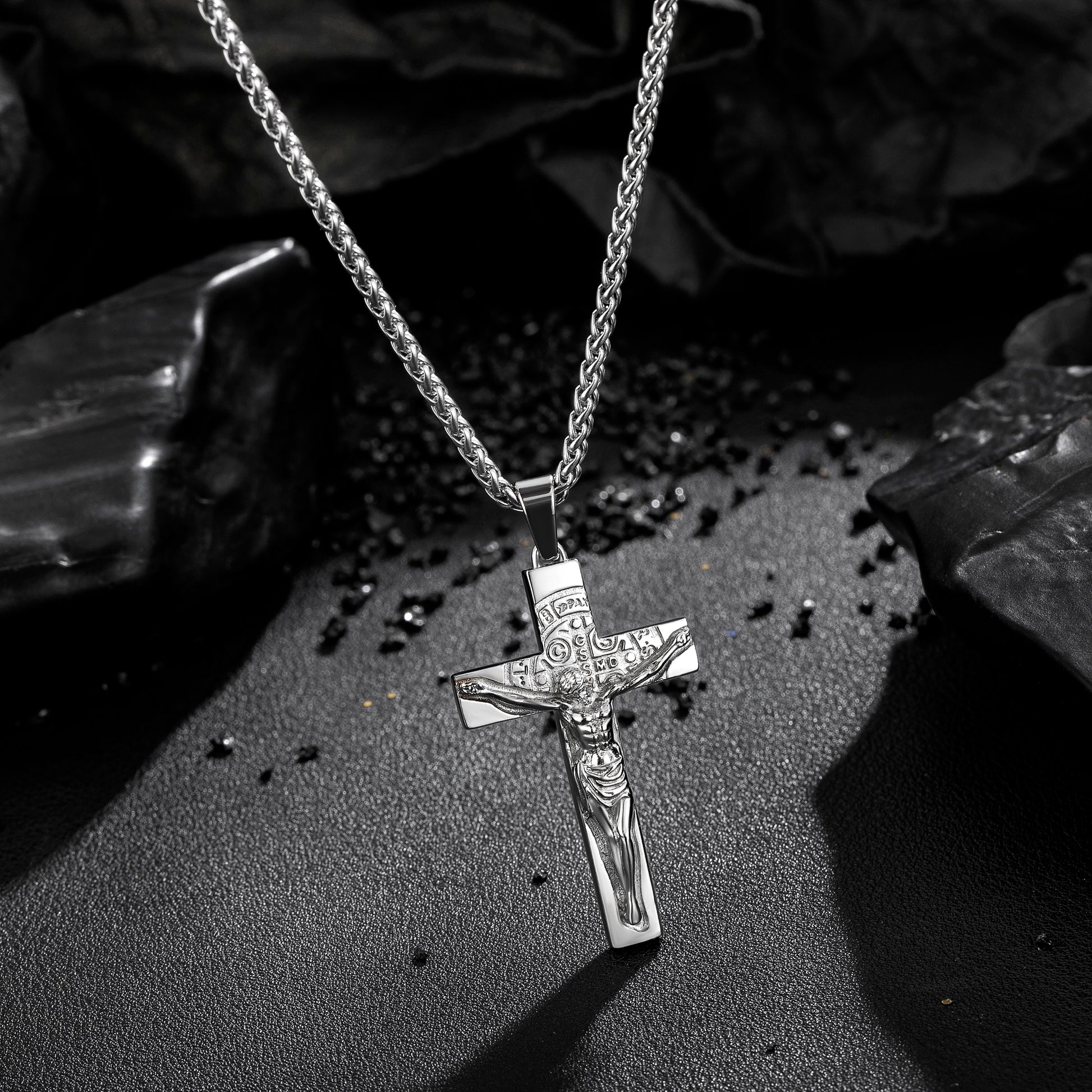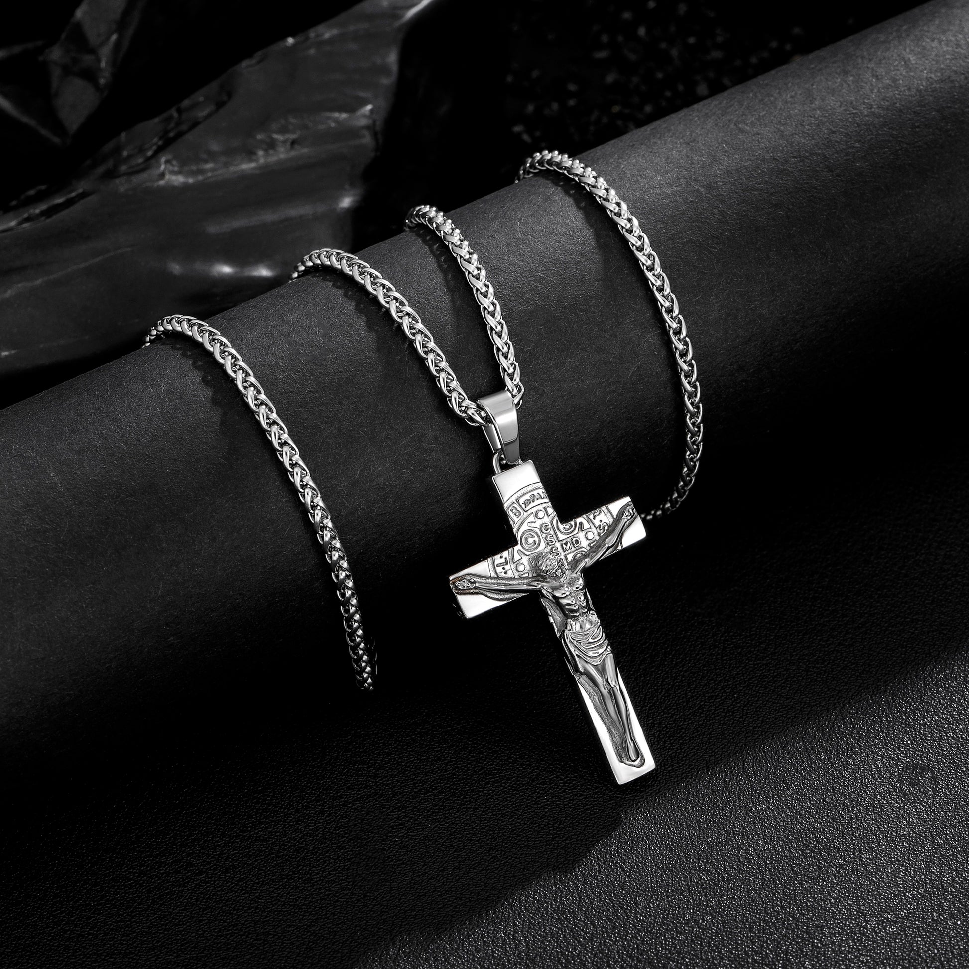 Cross Necklace for Men Women, Stainless Steel Crucifix Cross with Curb Chain Wheat Chain, Religious Faith Jewelry, Gift for Family