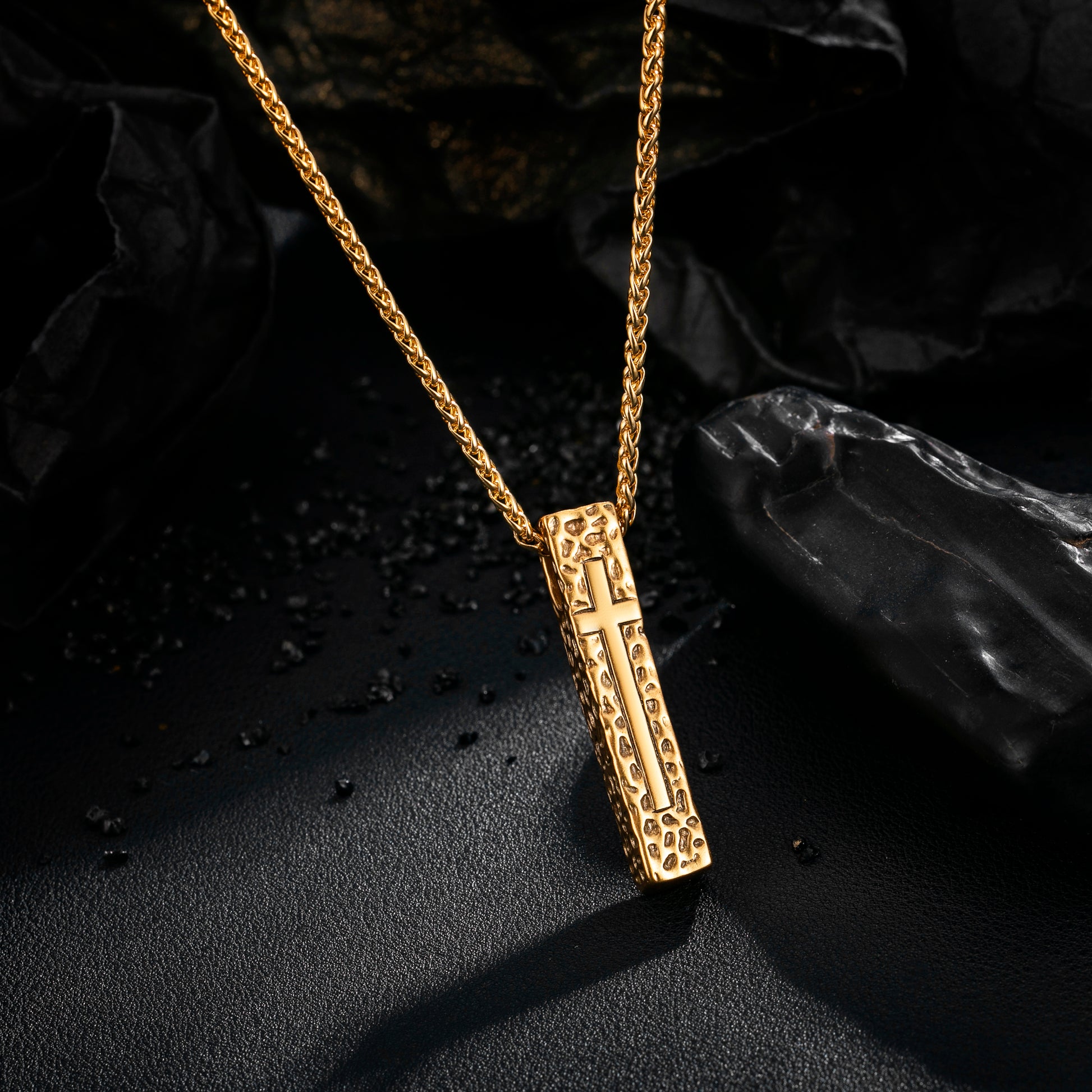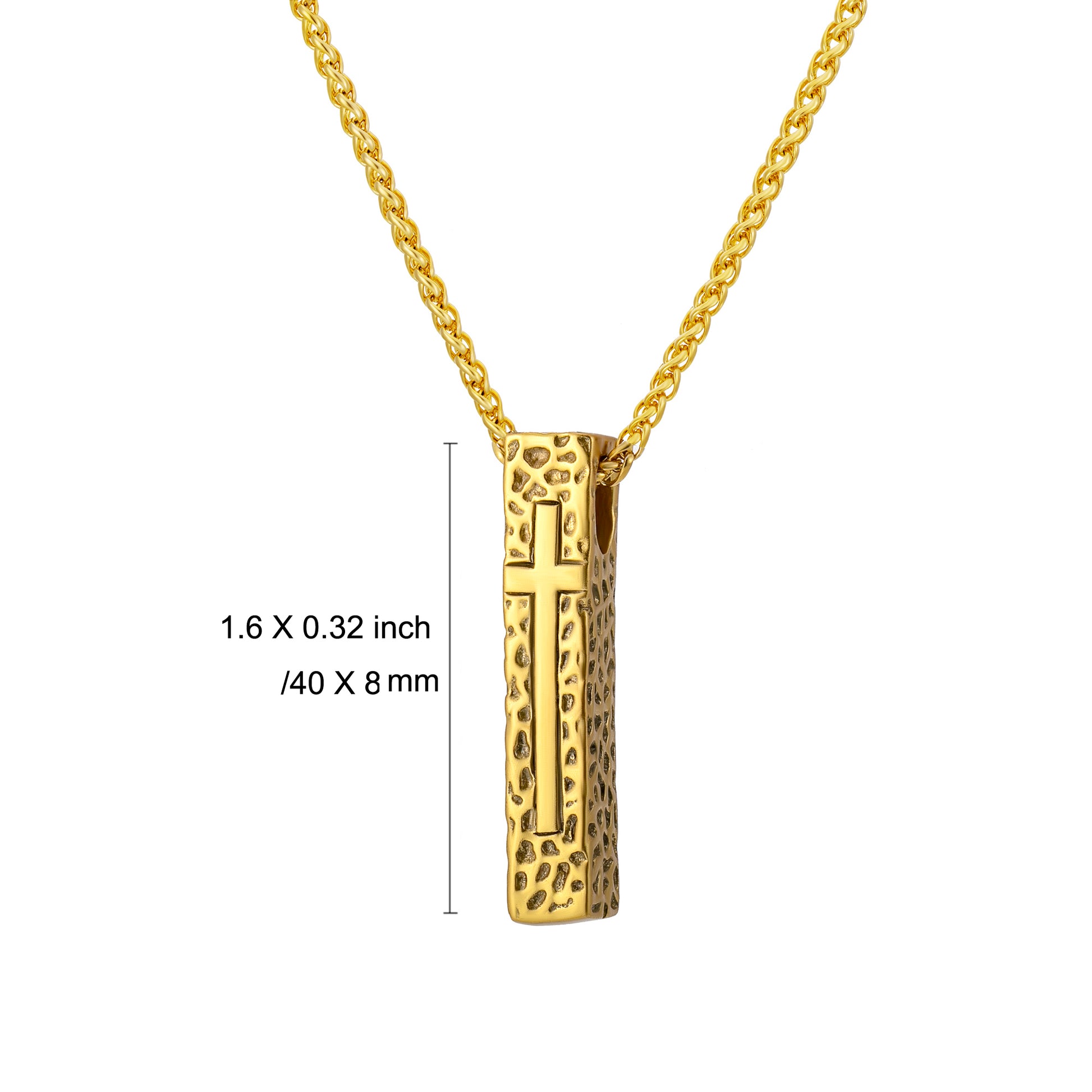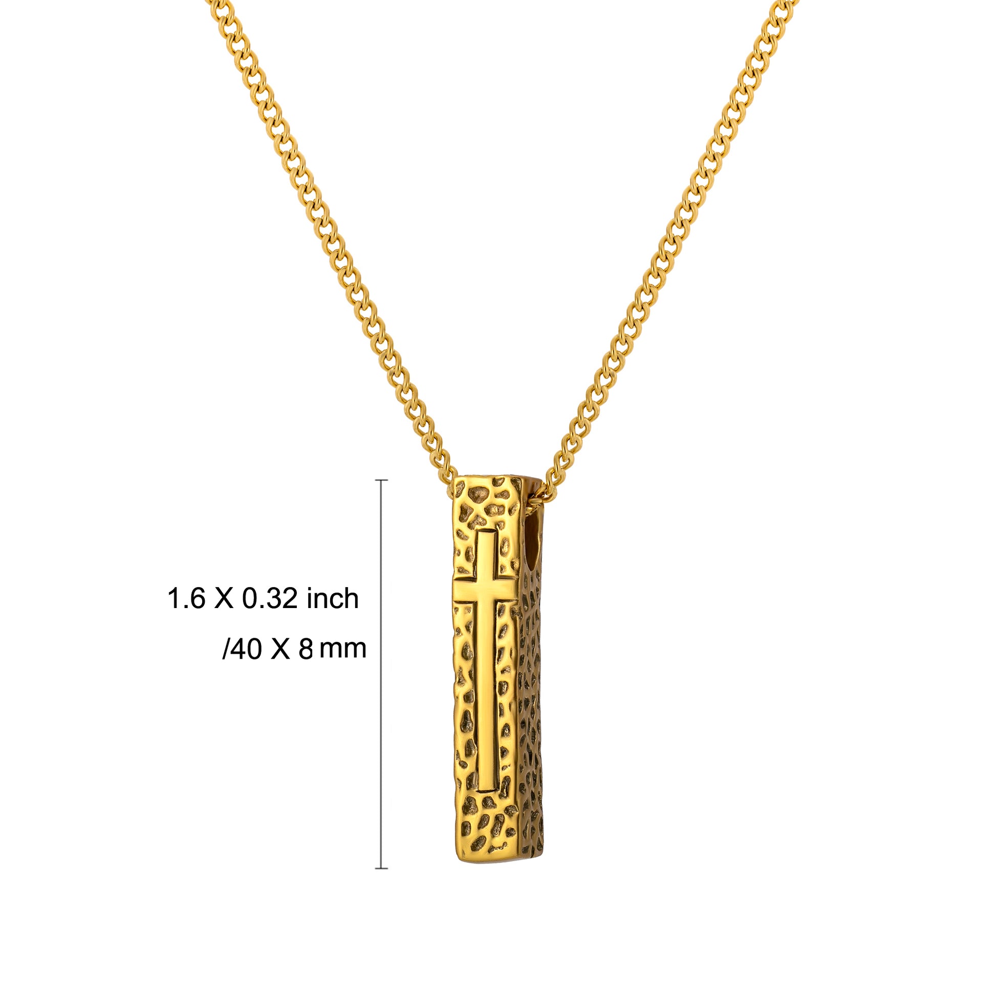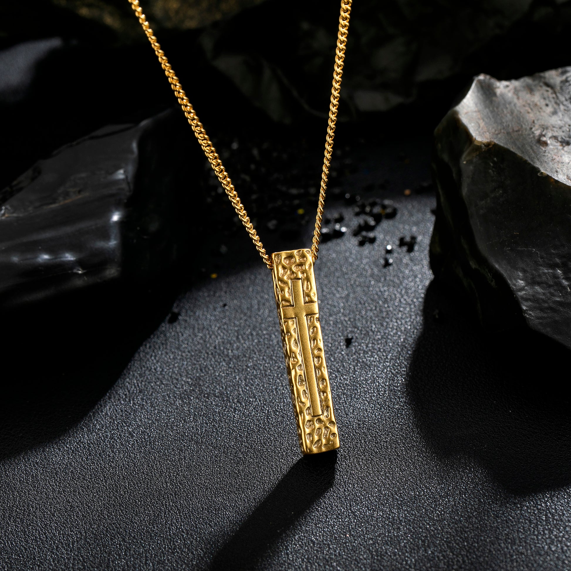 - Distinctive Textured Design: This bar cross pendant highlights a detailed surface that brings modern contrast to the traditional faith symbol. The vertical design gives a sleek, structured profile that pairs well with both classic and streetwear outfits, ideal for layering with other chains or wearing alone as a statement accessory for men and women.